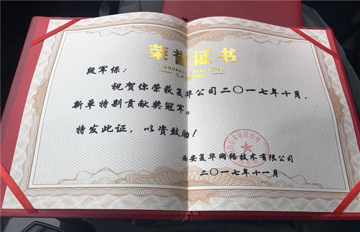 > 2017年10月新单特别贡献奖冠军