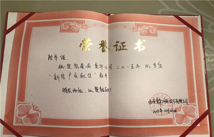 15年Q3季度‘新客户贡献奖’